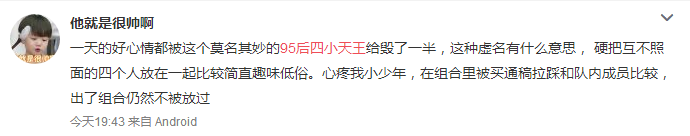 虽然四枚小鲜肉各有所长,让人难以取舍,但是毕竟年龄还小,“四小天王”也只是某些媒体发起的投票,“天王”的名头对于他们来说终归是太重了点,所以就有网友po出自己的观点表示不赞同这个票选~