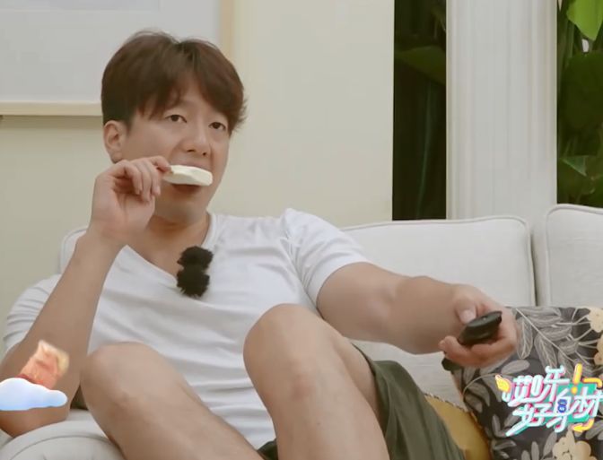 他的日常画风是葛优瘫,爱吃冰棍,一会的工夫就吃了4根。