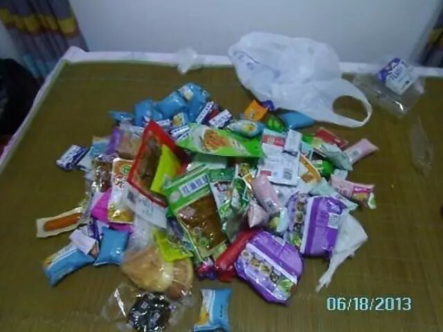 当背包到的时候,我们把吃的全部都塞进了背包了,真的一包里面全部都是吃的,全都是!