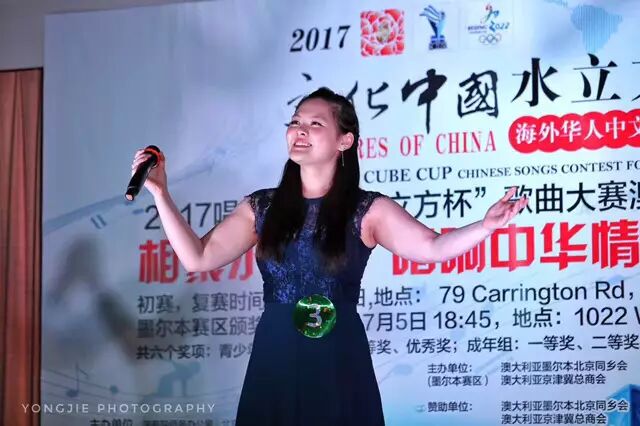 刘心倚同学在今年“水立方杯”澳洲墨尔本赛区的比赛中演唱