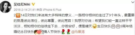 但到了情人节的时候,吴佳尼似乎也不像往年一样在微博上对马景涛表白