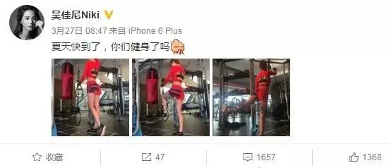 目前吴佳尼尚未对离婚做出任何表态,她的微博最新动态仍是四天前的健身照