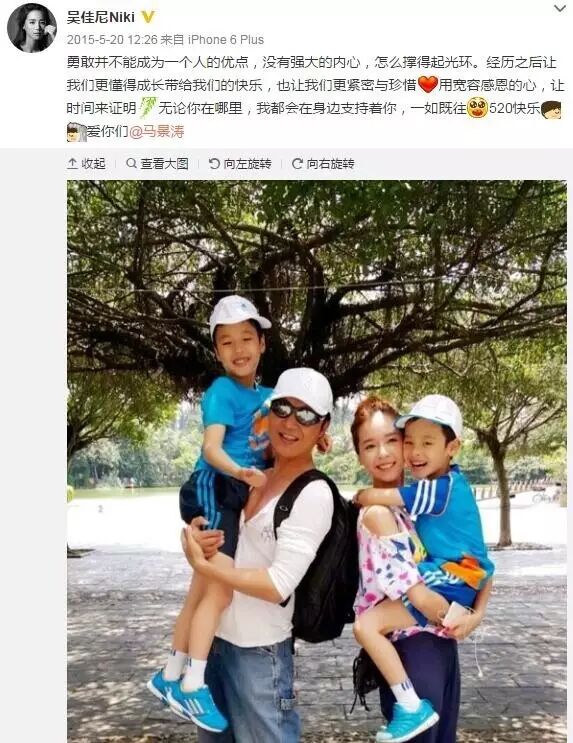 这件事一开始并没有引起太大关注,但到晚上却开始逐渐发酵,因为网友们后知后觉地发现马景涛竟然在文中宣布了与妻子吴佳尼离婚的消息——“我的爱我的幸福我的婚姻都将在今天画上最完美的句号”。