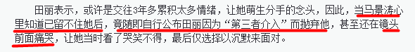 而俩人分手之后,马景涛甚至还诋毁是田丽劈腿导致
