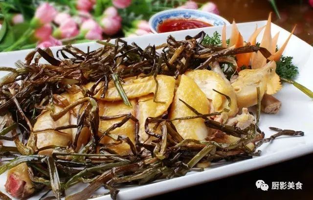醉鸡这道菜鸡肉肥嫩油润,香糟芬芳扑鼻。只要鸡1只,葱2根,姜4片,水2杯,盐1大匙,绍兴酒2瓶便可烹饪。