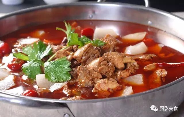 最先出自于重庆的璧山区,据说是一帮司机哥们出了一趟长途车,走到一个前不着村,后不着店的地方已是饥肠辘辘,好不容易看见一家食馆,上前一问老板都关门了,什么也没有了,说尽好话,老板只好将就把自己养的鸡宰了,又加了大量的辣椒和香料,还有剩余的火锅底料一起烧,没想到这一烧,就烧出了一道名菜,从此风靡川渝两地。重庆烧鸡公温中益气,补精添髓,补虚益智。