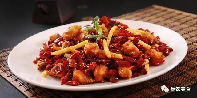 香辣鸡是成都一道传统名菜,此为川菜特色佳肴,采用干辣椒、豆瓣、辣椒面为调料制作,以突出辣椒的香辣之味而得名,运用广泛,酒饭均宜。