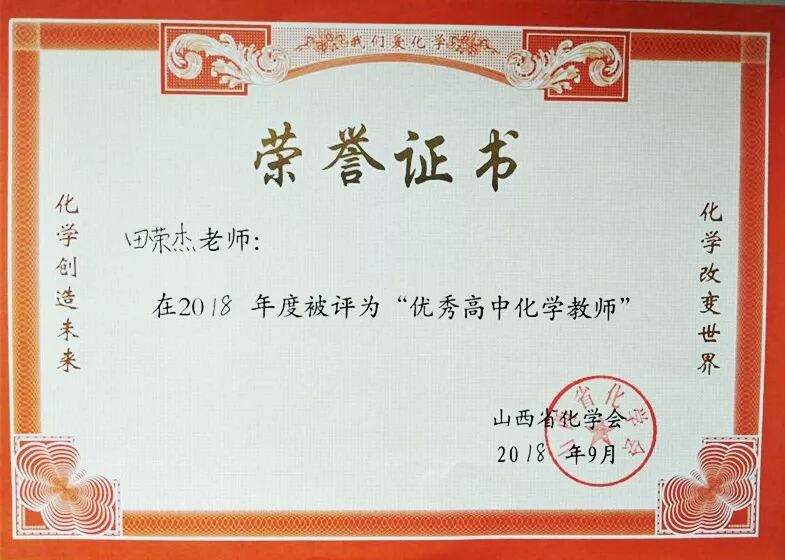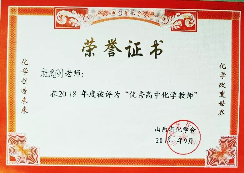 我校教师杜虎刚、田荣杰、田艳艳荣获“优秀高中化学教师”荣誉称号。