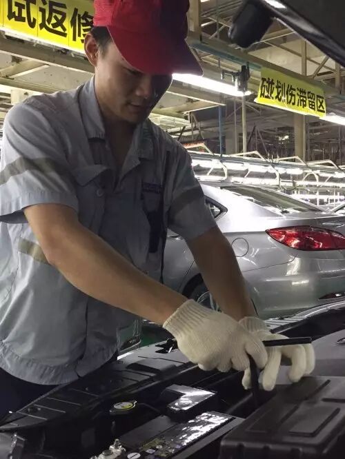 为了顺利完成每一道调试工序,达成“4小时入库”的目标,工艺停车场的员工必须顶着高温,进入车体,认真细致地检查汽车各项性能。