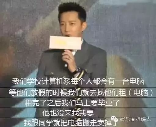 而韩庚对在场群众和媒体自爆,13年前上学时跟计算机系同学租的电脑,最后没有归还就偷偷卖掉了!