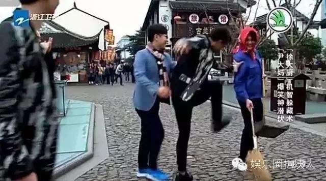 《24小时》中,尹正藏起来,韩庚队找不到他,游戏输了,韩庚就上去踢了尹正!