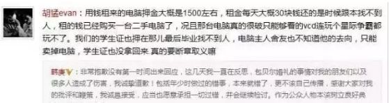 而关于电脑事件,韩庚的朋友出来解释说,韩庚当时是付了1500的押金以及学生证,并且每日也有30块的租金,后来电脑所有者出国找不到人。