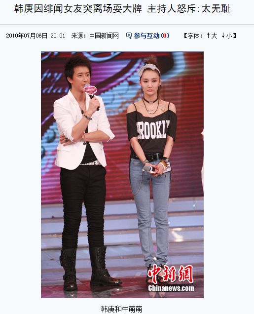 其实在娱乐圈,韩庚的绯闻不算多,传的比较真的绯闻对象也只有李小璐和牛萌萌。
