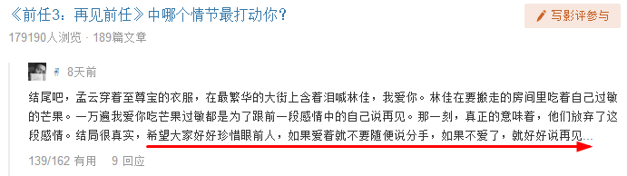 最重要的就是它的泪点恰到好处,虽然有人认为有点矫情,但不妨碍它戳中了无数人的内心,尤其是最后梦云(韩庚饰)孟云穿着至尊宝的衣服,在最繁华的大街上含着泪喊“林佳,我爱你”!姨太看的时候,在影院听到了很多人轻轻啜泣的声音...