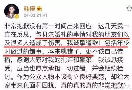 之后韩庚就闹伴娘事件,以及年少时做过的错事,统一道歉!