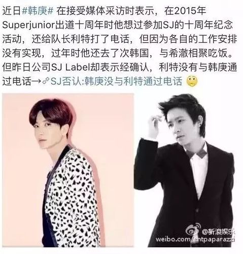 后来韩庚又说想去参加SJ十周年的活动,想作为SJ的一员回归组合,但是又被打脸说他并没有和队长利特联系……