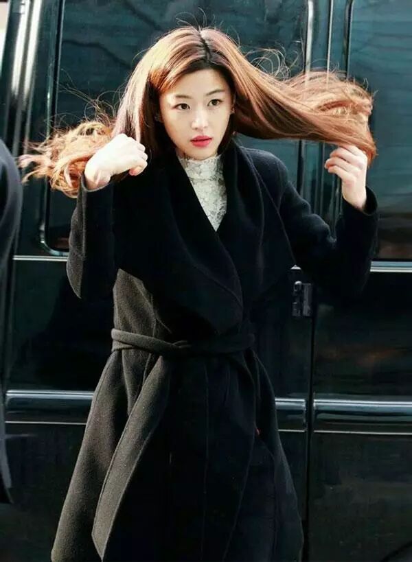 蓝色的蕾丝连衣裙配上白色小西服外套,让全智贤十足的模特身材展现出了超高的强大气质,同时干练与恬静满满。