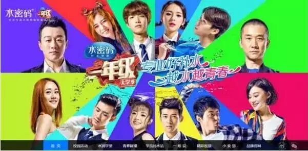 2015年,水密码斥巨资独家冠名《一年级·大学季》,2016年又牵手霸屏电视剧《放弃我,抓紧我》,朝气蓬勃的节目俘获了90后年轻群体的芳心,自然也为其培养了一批消费主力军。