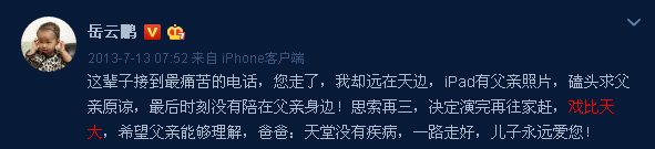 所以,岳云鹏强忍着丧父之痛,坚持完成了巡演,之后才匆匆赶回家中料理父亲的后事。