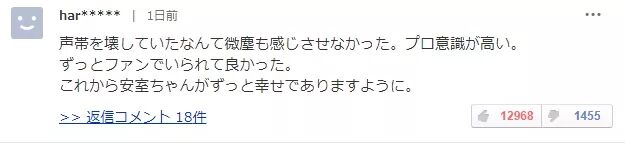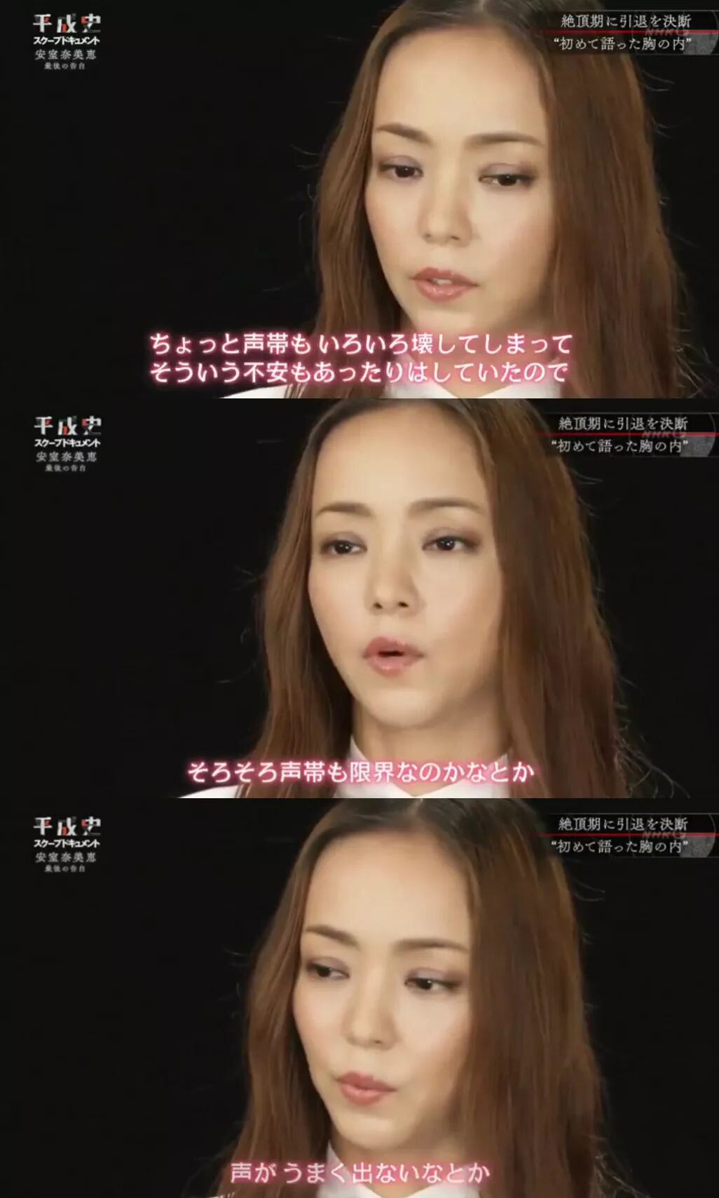 接着安室表明了自己7年前声带就已经受损的事实,“声带受到了不少损伤…很是不安,觉得声带差不多要到极限了,接下来会慢慢发不出声音......”