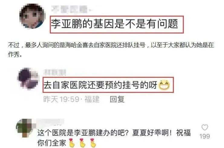 有网友评论,也许是基因问题,毕竟李亚鹏的大女儿李嫣是兔唇,这是一种先天病。小女儿现在又手指脱皮,是否证明李亚鹏的基因不太好?