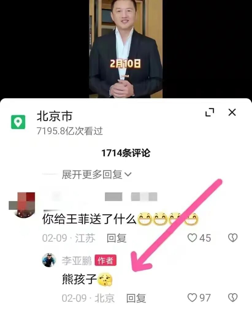 他为了流量,甚至不惜蹭前妻流量。情人节那天,有人问他送王菲什么?李亚鹏竟然回答,熊孩子。
