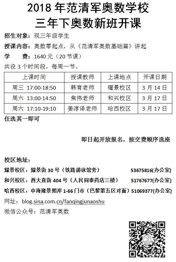 3月新班 三年级下学期零基础奥数:韩育/焦伟/姜淳译 范清军奥数 内地男星 2018-02-09 20:50:12 713 创作不易,用心坚持,欢迎请BaGua喝几杯爱心咖啡!打赏并支持本文 打赏并删除本文 现已开放报名! 创作不易,用心坚持,欢迎请BaGua喝几杯爱心咖啡!打赏并支持本文 打赏并删除本文 感谢您的支持鼓励,我会继续努力的!文章地址:用户邮箱:打赏金额:USDT 请输入数字点击”去打赏“,即可进行打赏支持本文章哦 焦伟 About the Author 范清军奥数 功能介绍:发布范清军奥数各项通知,上课时间表 Related Posts 2019年3月三年级下学期零基础奥数招生计划:焦伟,姜淳译 2018-12-09 17:19:13 3月新班 三年级下学期零基础奥数:韩育/焦伟/姜淳译 2018-02-09 20:50:12 三年级下学期零基础奥数新班招生计划:韩育/焦伟 2018-01-15 19:40:36 2018年3月 三年级下学期零基础奥数新班招生计划:焦伟/韩育 2017-12-25 09:17:55 今晚焦伟老师《包含与排除》第二讲,四年级奥数 2017-12-10 10:25:34 发表评论