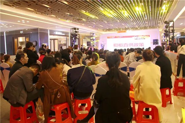 欧派江西营销经理钟玉林先生上台对本次活动政策进行了公布,重重优惠政策的发布引发了现场阵阵的叫好声,现场下单不断,活动收银处排起了长长的队伍,一张张抽奖券不停地被放入抽奖箱。