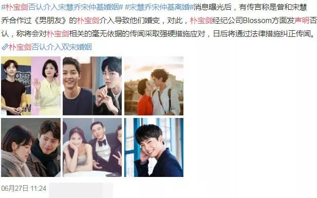 有关于宋慧乔和朴宝剑的谣言其实流传着多个版本,虽然宋仲基方仅是针对其中一个版本进行了“强烈的否认”,但也能看出宋仲基与宋慧乔离婚其实跟朴宝剑一点儿关系都没有。