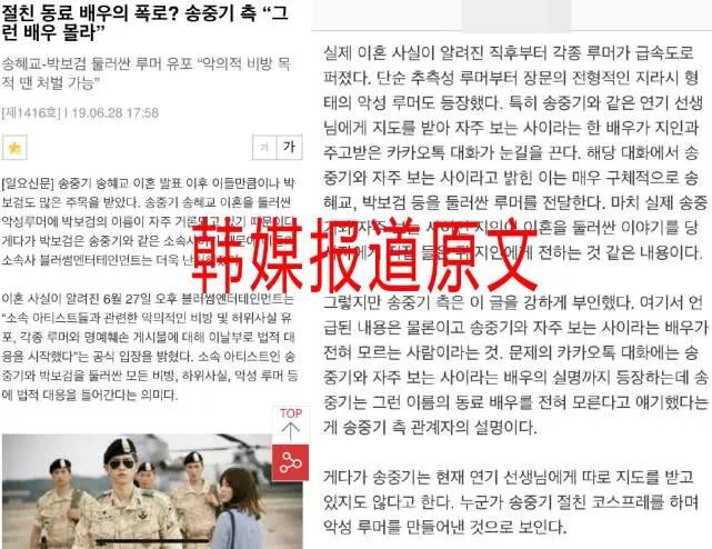 朴宝剑一方可谓是反应迅速,在谣言刚开始传播的时候,就通过经纪公司进行了澄清,但是宋慧乔却一直在保持沉默,发布离婚声明之后也没有了声音,所以宋仲基一方帮助澄清是一场及时雨,只不过由于语言的问题,传递到我们这里太慢了。