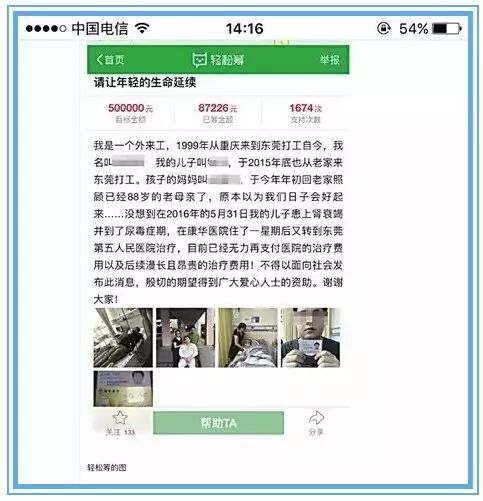 我生病,众筹,舆论扩散,大家集资,我病好了我还是土豪。