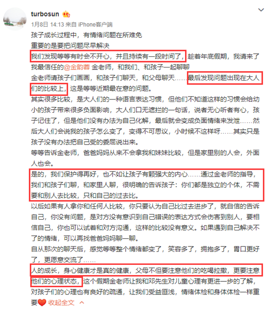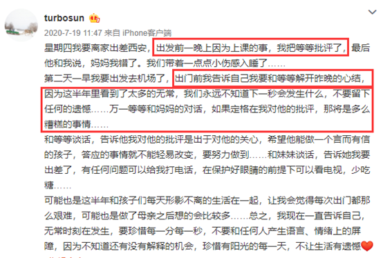 前一段,孙俪发博说自己的儿子出现了情绪问题。