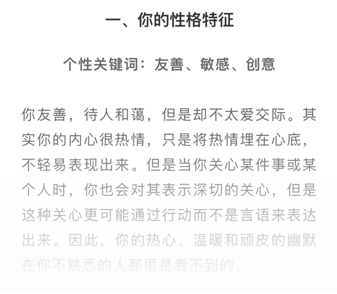 ※本测试将从性格特征、性格纬度、恋爱风格等多个维度来评估你的爱情性格类型,分析最适合你的异性类型,同时量身打造你们的相处之道,并分析哪些因素会影响你的恋爱关系,最后还为单身狗们独家定制专业的脱单攻略。