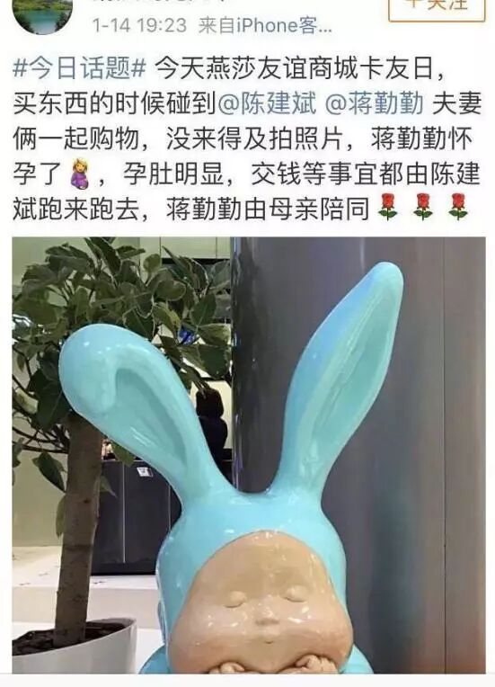 前一段时间,有网友在商场偶遇蒋勤勤,称看到蒋勤勤的肚子很大,应该有好几个月了!