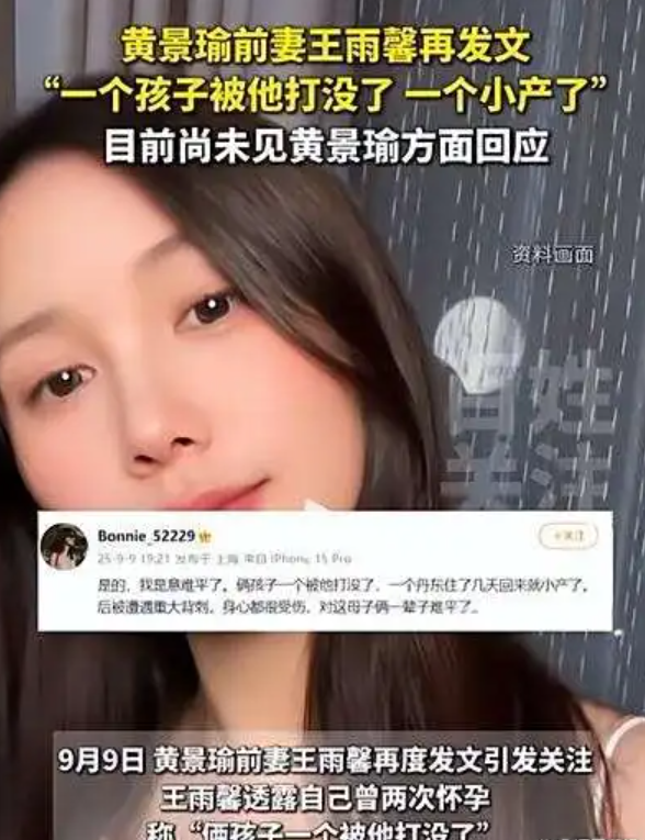 9月9号晚上,王雨馨在微博上写道:“俩孩子一个被他打没了,一个丹东住了几天回来就小产了。”这话一出,炸了锅。话题迅速冲上热搜,评论区瞬间成了战场。