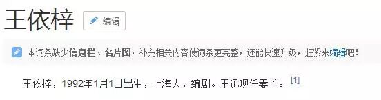 这位娇妻叫王依梓 百科显示职业是编剧 网友爆料她毕业于职高