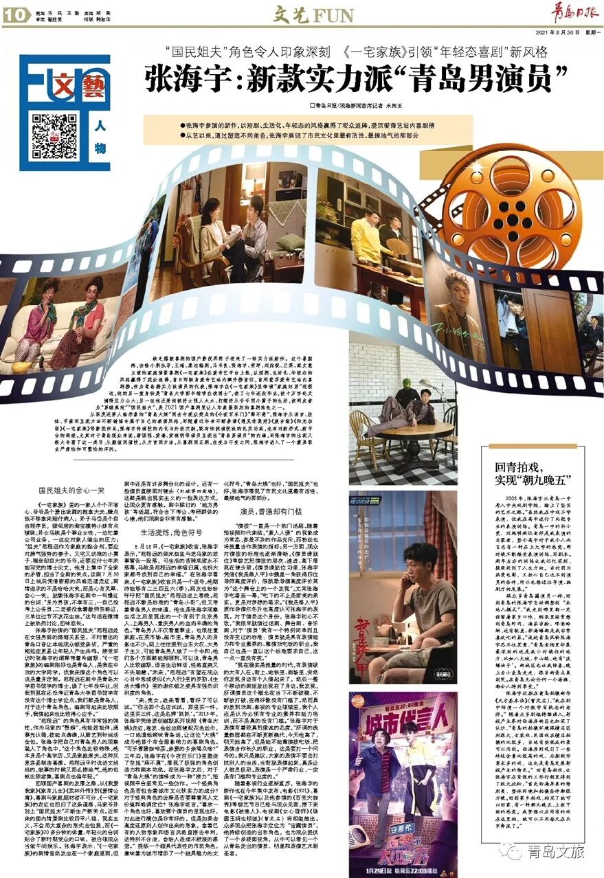 张海宇:新款实力派“青岛男演员” 青岛文旅 内地男星 2021-08-30 09:51:12 6 创作不易,用心坚持,欢迎请BaGua喝几杯爱心咖啡!打赏并支持本文 打赏并删除本文 点击上方青岛文旅关注我们本文约4000字 阅读约需 10 分钟 ●张海宇参演的新作,以短剧、生活化、年轻态的风格赢得了观众追捧,登顶爱奇艺站内喜剧榜●从艺以来,通过塑造不同角色,张海宇展现了市民文化里最有活性、最接地气的那部分缺乏爆款喜剧的国产影视界终于迎来了一部实力派新作。这个暑期档,由徐小朋执导,王瑶、慕远编剧,马书良、张海宇、贺坪、刘炫锐、卫莱、梁文慧主演的家庭情景喜剧《一宅家族》在爱奇艺平台上线,以短剧、生活化、年轻态的风格赢得了观众追捧,首日即跻身爱奇艺站内飙升榜首位,首周登顶爱奇艺站内喜剧榜。作为青岛籍实力派演员的代表,张海宇在《一宅家族》里饰演“家庭妇男”范程远,他的另一重身份是“青岛大学图书馆学在读博士”,读了七年还没毕业,被十万字论文搞得压力山大;另一边他还要伺候好女强人太太、打理好从爷爷到小舅子的生活,被网友誉为“男德典范”“国民姐夫”,是2021国产喜剧里让人印象最深刻的喜剧角色之一。从深度还原人物形象的“青岛大姨”到击中观众笑点的《今夜百乐门》“薛不惠”,张海宇从语言、肢体、节奏到呈现方法不断锤炼专属于自己的表演风格,而随着近年来不断参演《遇见你真好》《宸汐缘》《阳光劫匪》《一宅家族》等影视作品,张海宇将演技的内化与外放交融,既有传统演技派的扎实功底,也有对新形式、新平台的调适。尤其对于青岛观众来说,唐国强、黄渤、黄晓明等演员呈现出“青岛男演员”的内涵,而张海宇的出现又极大丰富了这一类目:从颜值到演技,从方言到方法,从喜剧到正剧,在变与不变之间,张海宇进入了一个兼具职业严肃性和可塑性的序列。国民姐夫的会心一笑《一宅家族》里的一家人个个不省心:爷爷是个爱出纰漏的推拿大夫,赚点钱不够拿来赔付病人;孙子马岱是个自由程序员,跟邻居的淘宝模特小妹有点暧昧;孙女马桃是个事业女性,一边忙着公司业务,一边应对家人催生的压力;“姐夫”范程远作为家庭的黏合剂,要应对脾气强势的妻子、又宅又幼稚的小舅子、糊涂却自大的爷爷,还要应付七年未能写完的博士论文,他身上集中了全家的矛盾,担当了全剧的笑点。该剧7月30日上线后凭借新颖的风格迅速走红,剧情追求的不是哈哈大笑,而是心有灵犀、会心一笑,就像张海宇在剧中一句爆红的台词:“身为男孩,不孝有三,一自己没考上公务员,二老婆没拿着教师资格证,三单位过节不发花生油。”这句话在微博上被热烈讨论,回味悠长。张海宇扮演的“国民姐夫”范程远处在女强男弱的婚姻关系里,不时冒出的青岛口音让本地观众顿觉亲切,严重的拖延症更易让年轻人产生共鸣。接受采访时张海宇的阐释带着冷幽默:“《一宅家族》的编剧刚好也是青岛人,是我在中戏的大学同学,找我来演这个角色可以说是量身定制。范程远在剧中是青岛大学图书馆学的博士,读了七年没毕业,但我到现在还没考证青岛大学图书馆学有没有这个博士学位点。我们都是青岛人,对于这个青岛角色,编剧写起来比较顺手,我演起来也比较得心应手。”“范程远”的角色具有非常强的弹性,作为马家的“赘婿”,他能屈能伸,遇事先认错,技能点满满,从厨艺到针线活全包。张海宇把自己对青岛男人的观察融入了角色中,“这个角色比较特殊,他本身是个高学历,又是家庭煮夫,这种反差容易制造喜感。范程远平时说话文绉绉的,做事的时候又那么接地气,他的包袱比较密集,喜剧点也偏年轻。”回顾国产喜剧的发展之路,从《我爱我家》《家有儿女》《武林外传》到《爱情公寓》,喜剧与家庭题材密不可分,《一宅家族》的走红也回归了这条道路,马家爷孙加上“国民姐夫”不断生产新笑点。近年来的国内情景剧比较四平八稳、现实主义,不会用太复杂的形式去包装,而《一宅家族》20多分钟的体量、年轻化的台词贴合了新时期受众的口味,被白领观众当做午间娱乐。张海宇表示:“《一宅家族》的剧情虽然发生在一个家庭里面,但剧中还是有许多舞台化的设计,还有一些演员直接面对镜头(打破第四面墙),这都是跳出现实主义的一些表达方式,让观众更有感触。剧中探讨的‘地方男孩’等话题,符合当下考公、考研群体的心境,他们观剧会非常有感触。”生活提炼,角色符号8月18日,《一宅家族》收官,张海宇表示,“范程远的柴米油盐与老马家的故事暂告一段落,可生活的苦辣咸甜永不落幕,马桃是范程远的幸福归属,也祝大家都寻找到自己的幸福。”在张海宇看来,《一宅家族》收官只是一个逗号,他期待能够有二三四五六(季)。网友也纷纷呼吁把“国民姐夫”范程远送上春晚。范程远不像是标准的“青岛小哥”,但又带着青岛男人的味道,他也是张海宇观察生活之后呈现出的一个有别于北京男人、上海男人、重庆男人的血肉丰满的角色。“青岛男人不仅看重事业,也很注重家庭。在菜市场、超市里,青岛男人的身影也不少。网上往往提到山东大汉、大男子主义,可能青岛男人做了一个中和,他们各个方面都能照顾到。可以说,青岛男人比较幽默,语言生动鲜活,性格直爽又不失聪慧。”未来,“范程远”有望在观众心目中形成类似《
