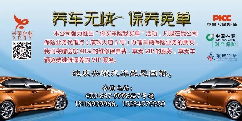 欢迎关注迪庆兴荣汽车服务公众号(xrqcfw-001)。【汽车免费保养】活动,请点击"阅读原文"。