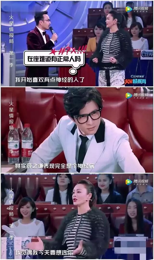 上《火星情报局》的时候也是看完薛之谦尬舞以后就表示想选一个“神经”的人来说提案,然后就选了薛之谦。