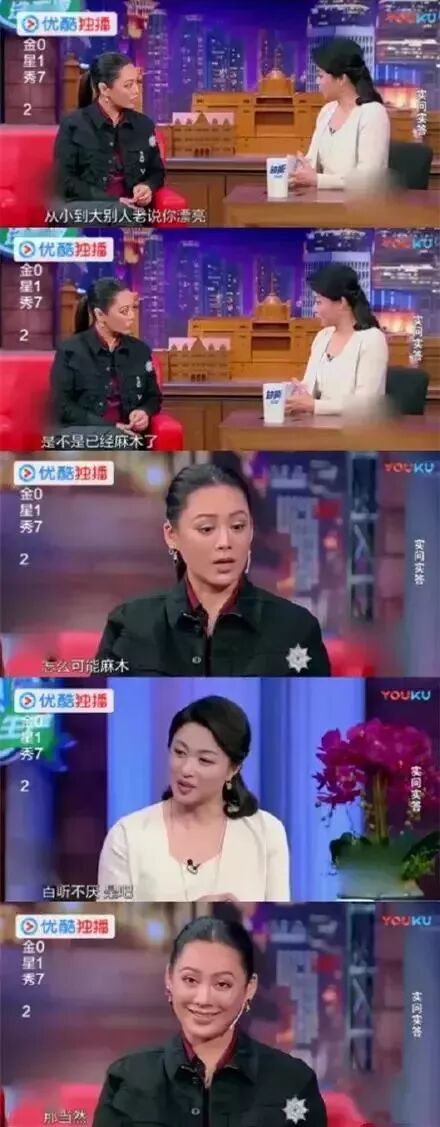 去《金星秀》的时候也是特别臭美的说自己从小漂亮到大,也是从小到大被夸赞,金星问了一句你麻木了吗?宁静还表示百听不厌......简直了我的静静。