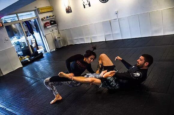 她对生活的艰难淡然处之,然而即便笼罩着光环的2016年阿布扎比世界柔术大赛冠军头衔,也并没有成为苗婕美梦的栖息之地。在她的记忆里,柔术紫带级别的奖金不高,很多时候奖金只够来回机票的钱。今年,她做出决定从搏击馆走向铁笼里的MMA(综合格斗)比赛。“年过三十的女人”和一群男人摔打一团,与其说是喜欢,更直白一点说是“想赚钱,想出名”。当她提起有一次训练断了腰,躺在床上呕吐不止的教训,很显然,难以达到辉煌阶段的自己不再是运动首选了,她自问自答似的说:“能怎么办?难道我不活了吗?”