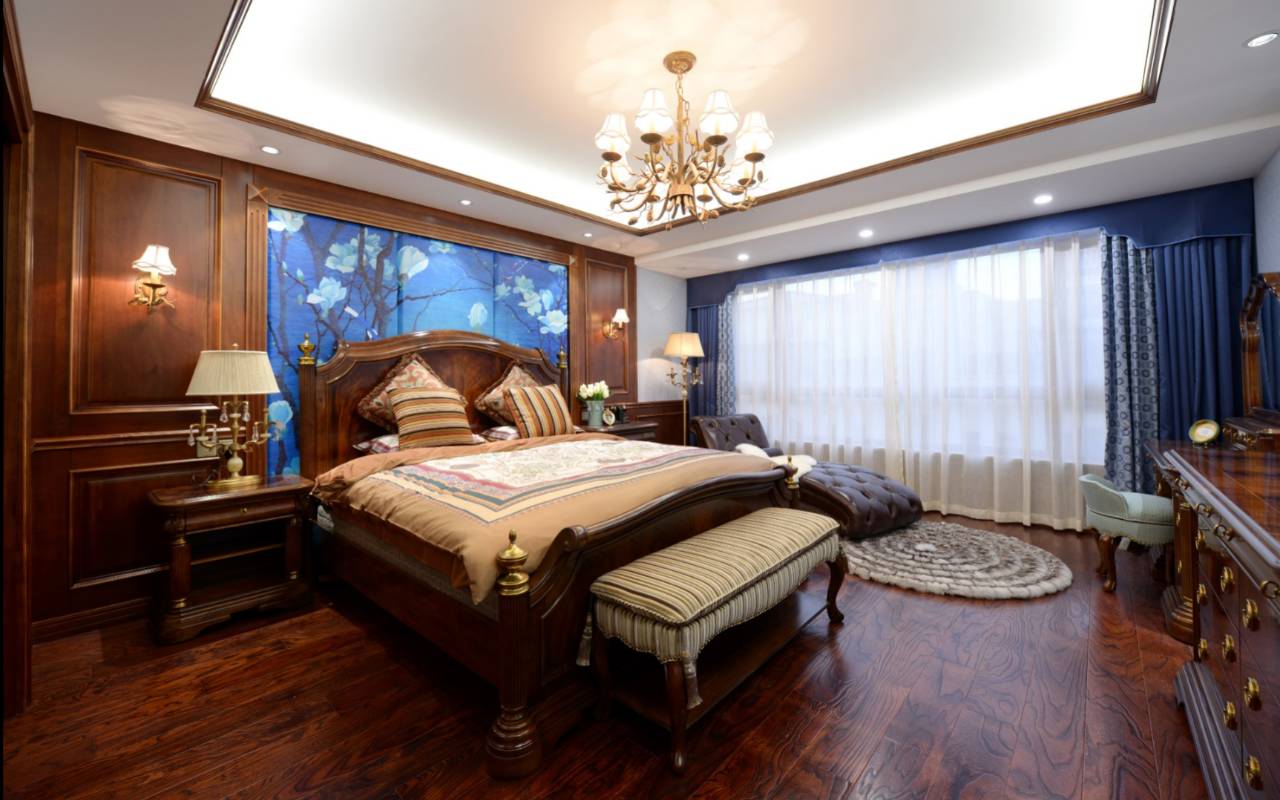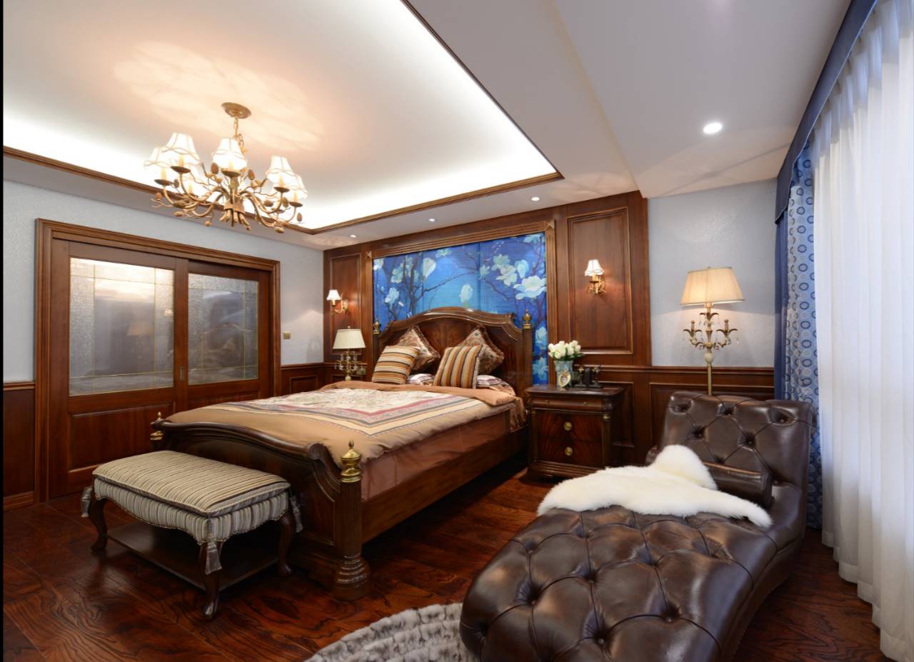 主人房内,古朴的色调铺面而来,精致的吊灯,两旁的床卫灯,地毯无不显示主人房的低调而又强大的气氛。