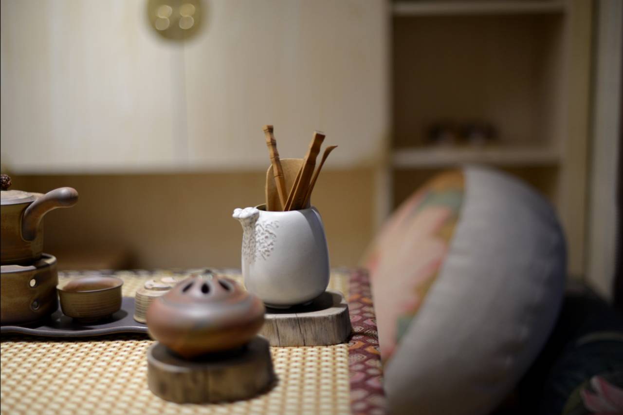 和谐是设计的一种追求,与大厅连接的餐厅也是黑白灰色调为主,简约的水刀、边线,配上深木色的家具,一切显得古朴而温馨。一茶一世界,一味一人生,茶文化的点缀,无不体现设计师的自我内涵,给家居空间增加一丝灵动的笔画。
