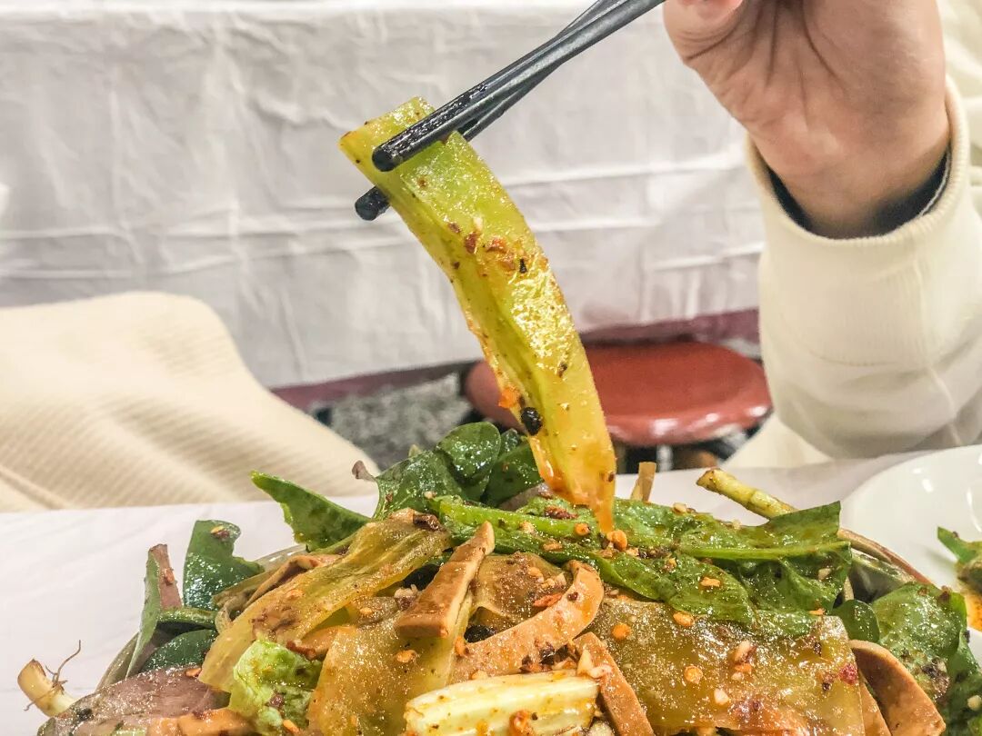 最后加了莴笋、豆干和折耳根,加上各种佐料,拌在一起,偏酸辣,回味微甜。