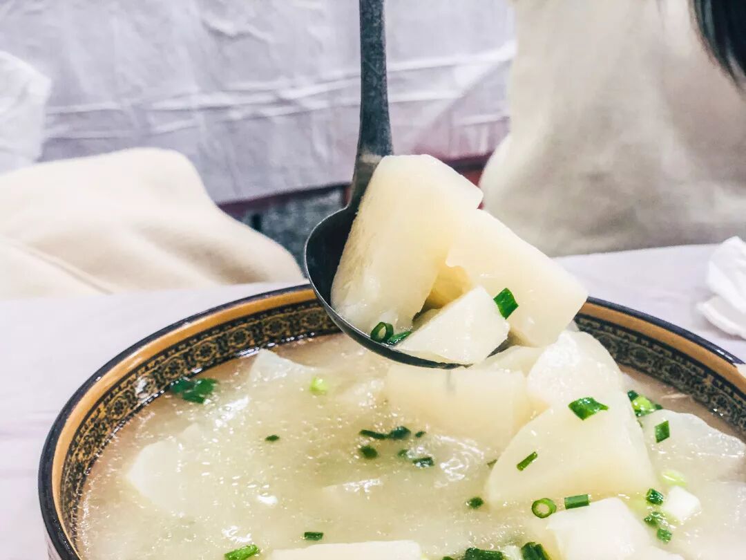 汤是用大骨熬的,喝起来比较鲜,萝卜清甜绵软,在寒冷的冬天,喝上一碗萝卜汤,感觉整个人都暖和了。