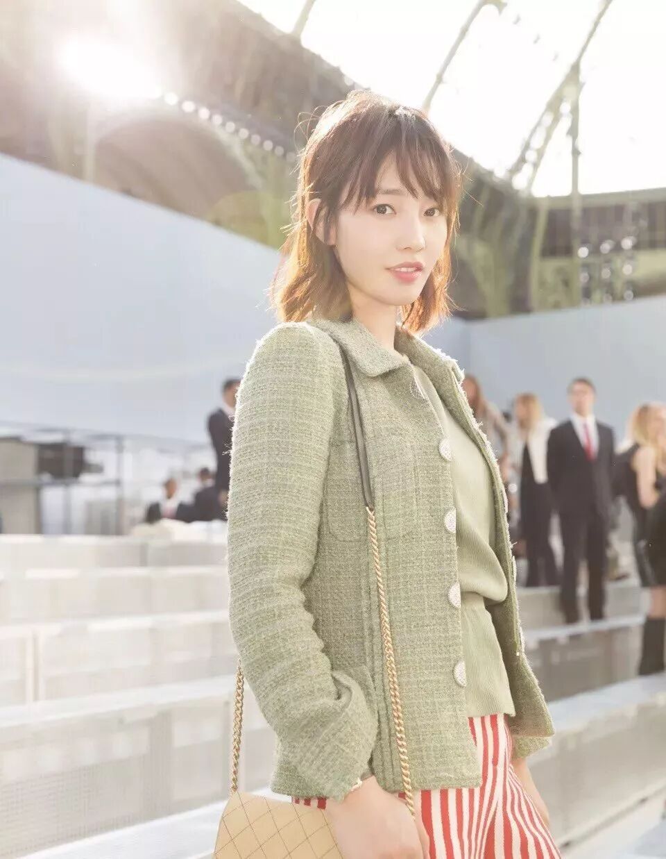 照片里,白百何穿着浅色西服套装,一头短发,妆容精致,笑起来一口大白牙,看起来心情大好。