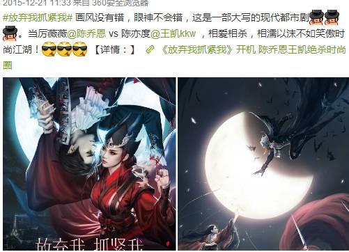 拍摄期也是微博电视剧热度榜排行前三的常客,是少数拍摄期就这么火热的电视剧。