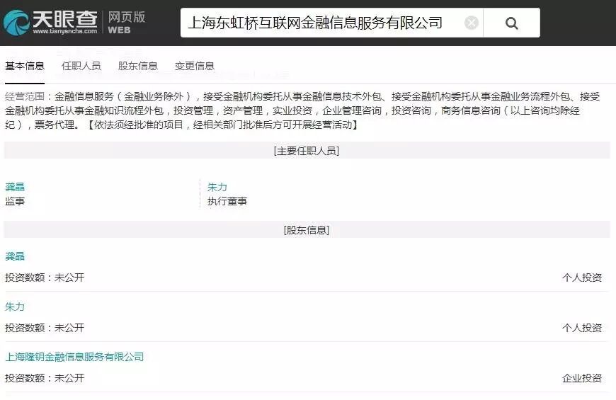 天眼妹查到,东虹桥的真正三大股东是龚晶,朱力跟上海隆钥金融信息服务有限公司。黄晓明只是明星合伙人,结果现在却成了背锅侠。然而网友却不买账觉得明星应该为虚假代言行为付出代价。只能说P2P跑路多,代言须谨慎。