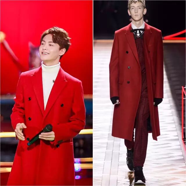 马天宇的Dior Homme红色大衣格外抢戏,据说衣服也是自己买的,比起借来的尺码会比较适合,倒是又贴切主题又衬他,这银子没白花。