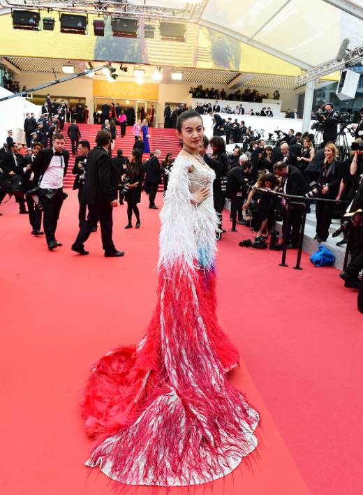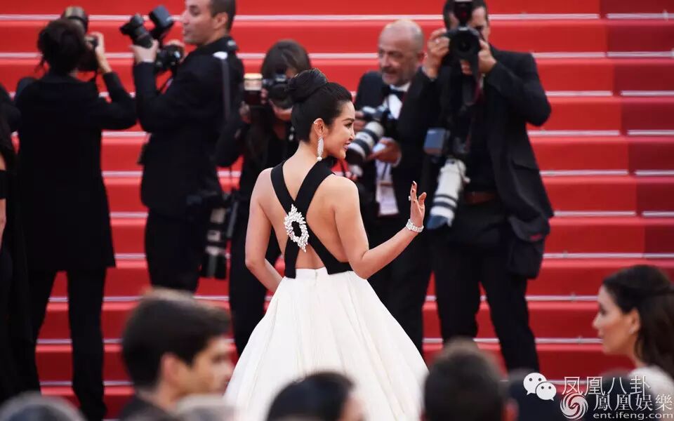 哪怕是主持人的结束点评,她都依依不舍地停留在画面里,成为这次戛纳红毯上怎么都避不开的中国元素……